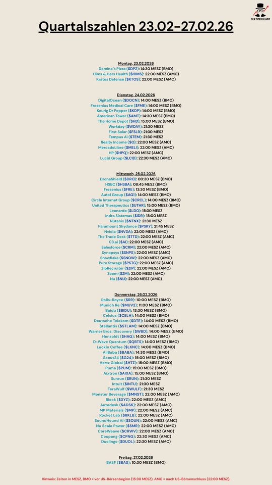 - Quartalszahlen / Unternehmenstermine USA / Asien