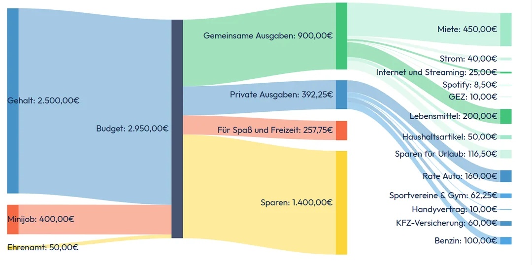 The first block is the transfer to the joint account for rent, electricity, etc. I have divided all joint costs by two as I live with my partner.