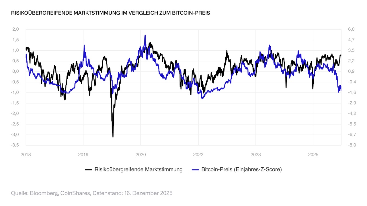 From a macroeconomic valuation perspective, the #bitcoin remains undervalued, as the attached chart shows. Our cross-risk sentiment indicator summarizes data from all global asset classes. It fell only slightly in November and recovered significantly in December, although bitcoin prices fell and remained at a low level. Macro models that explain the price development of Bitcoin based on key macroeconomic factors show a strong increase in residuals. This suggests that the current weakness is not related to the macroeconomic environment.