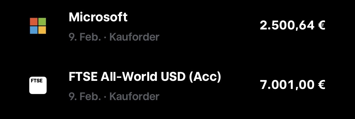 Unfortunately, it was already too late to execute the savings plans by direct debit at Trade Republic at the beginning of 02/2026. Therefore, they will now only be executed in the middle of this month.