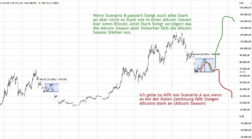 📊 Scenario A (The classic altcoin season): Bitcoin takes a break, but the rest of the crypto market explodes. In short, this means that everything except Bitcoin rises extremely sharply.