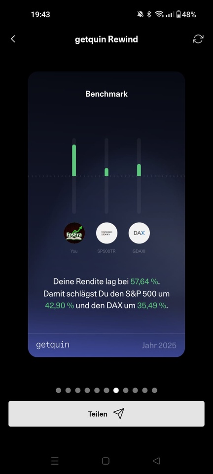 The getquin figures show a clear outperformance compared to the S&P 500 and DAX.