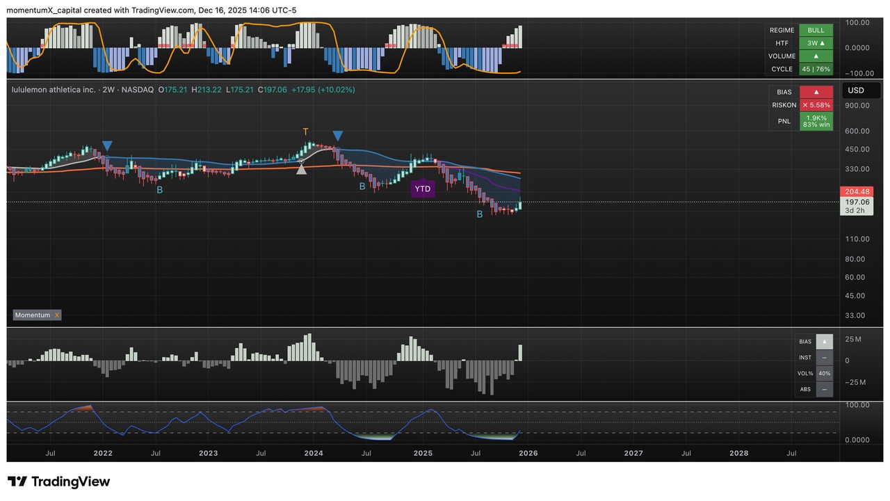 $LULU is showing a solid breakout on high volume move (breakout)