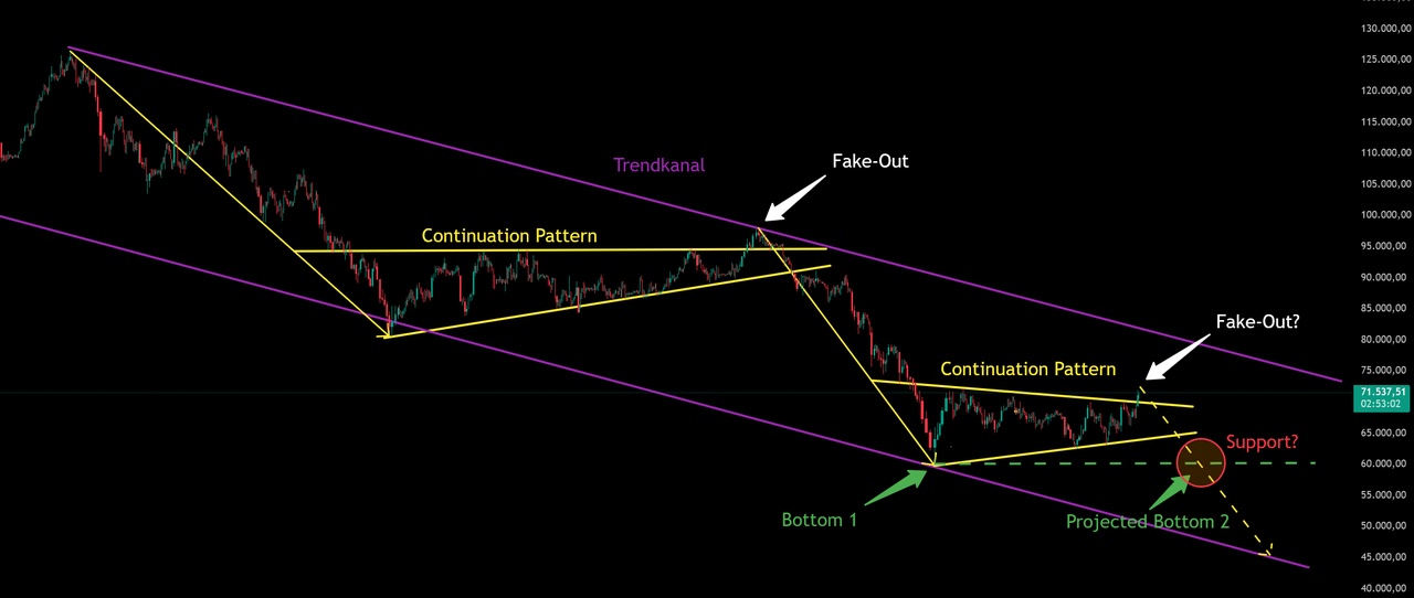 Now that $BTC (-2,06 %) and altcoins have been bullish about the conflict in the Middle East and are now showing a breakout from the downtrend, one should zoom out and visualize the structure of the trend.