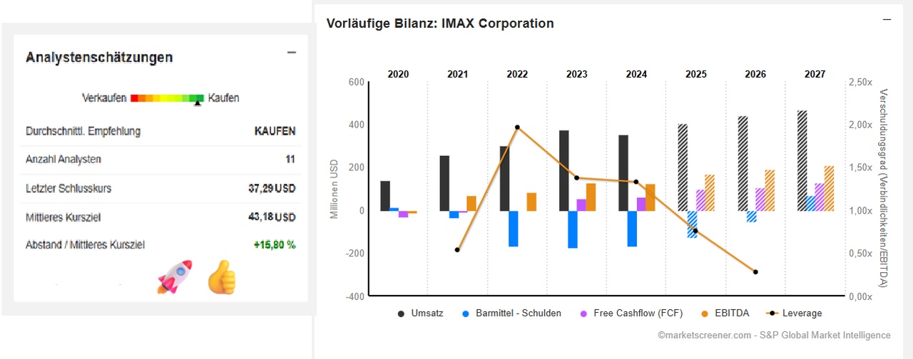 IMAX is using the momentum for aggressive expansion. This year alone, 130 new or modernized systems have already been agreed - as many as in the entire previous year. A particular coup: the partnership with Apple Cinemas is being doubled, with five new laser systems in the USA and a return to Philadelphia from 2026. These strategic moves are consolidating the company's market leadership in premium film distribution.