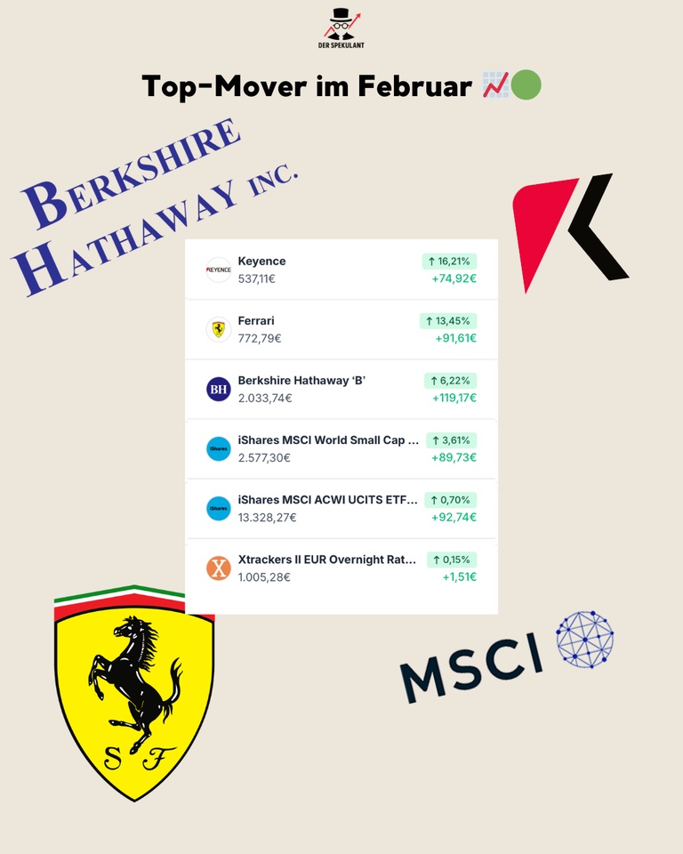 The strongest performer was Keyence ($6861 (+0,59%)), which showed massive relative strength with +16.21%. Another strong performer was Ferrari ($RACE (-0,25%)) was also strong with +13.45%, followed by Berkshire Hathaway ($BRK.B (+0,43%)), which acted as a stable anchor with +6.22%.