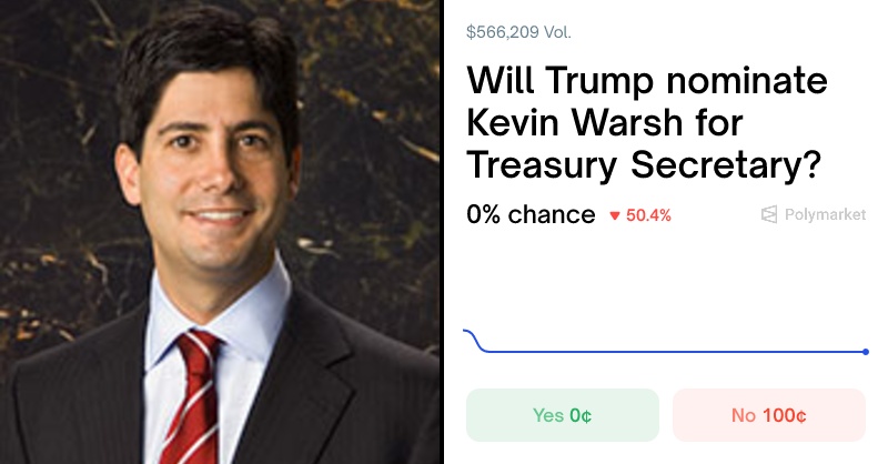 Polymarket Betting Market: https://polymarket.com/event/who-will-trump-nominate-for-treasury-secretary/will-trump-nominate-kevin-warsh-for-treasury-secretary?tid=1732035823612