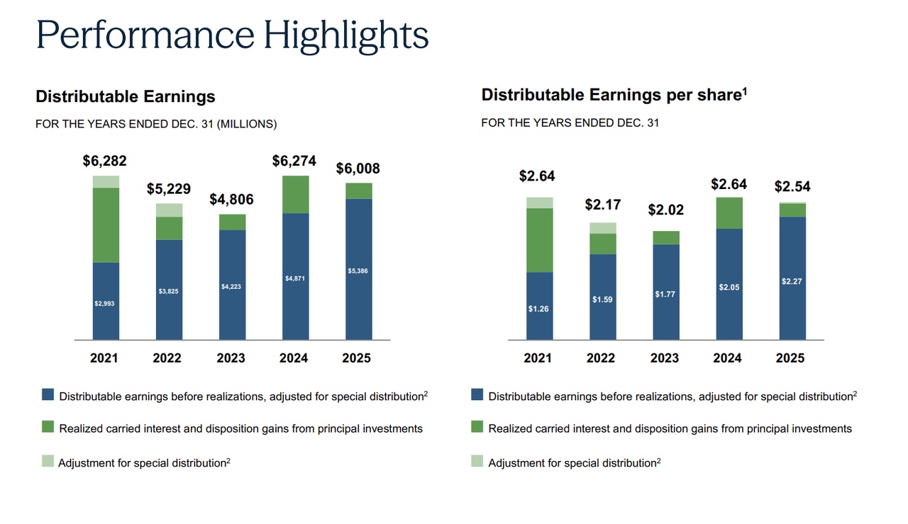 Brookfield also often distinguishes between "DE before realizations" (the stable cash flow from ongoing operations) and the "realizations" (the profits from the sale of completed projects).
