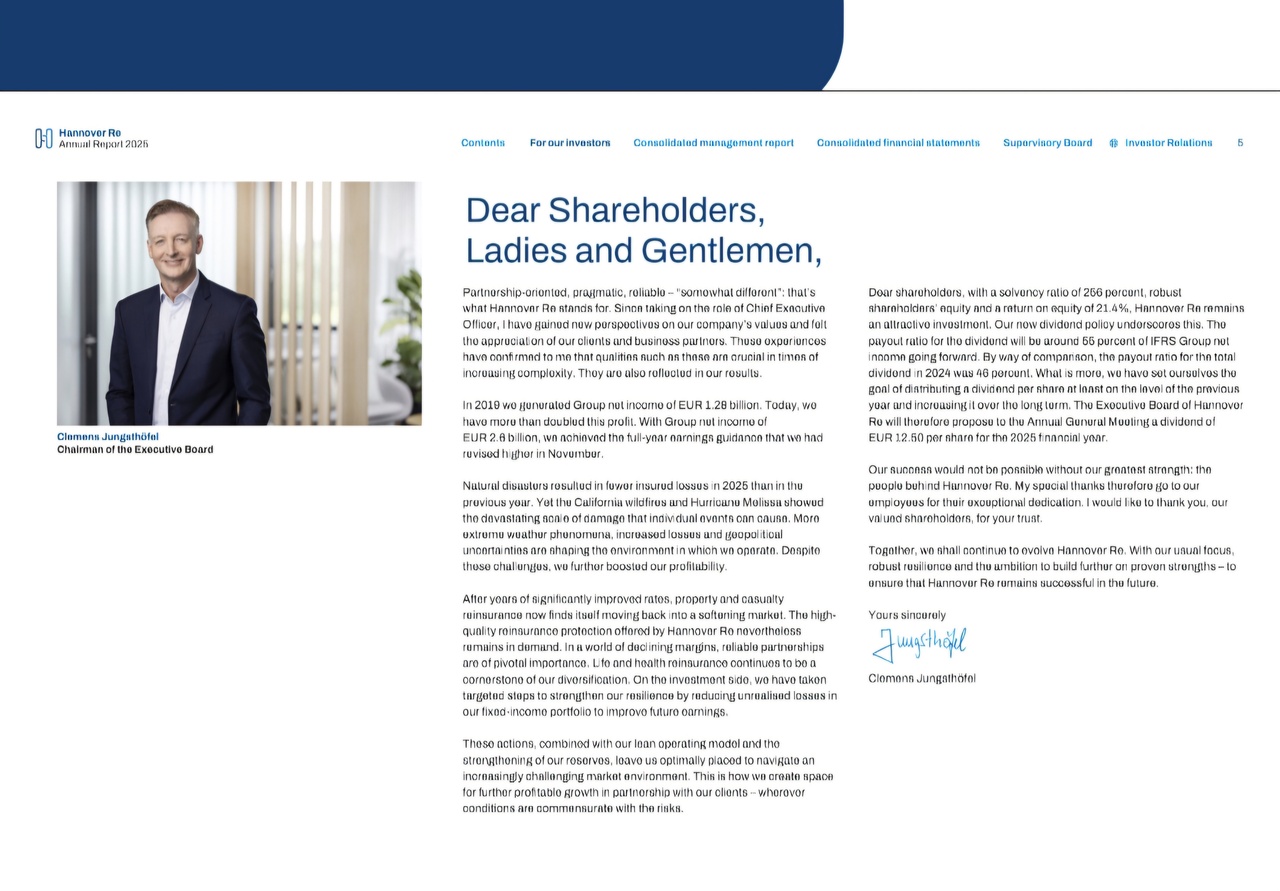 Hannover Re is thus continuing its shareholder-friendly dividend policy.