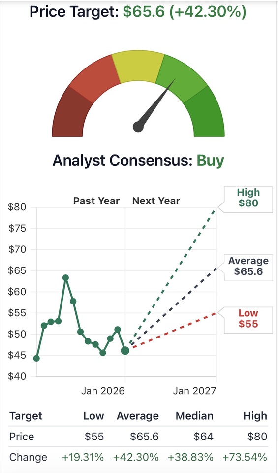 Analysts' price target: The consensus is approx. 63 - 70 USDwhich corresponds to an upside potential of approx. 25-35 % ⬆️entspricht.