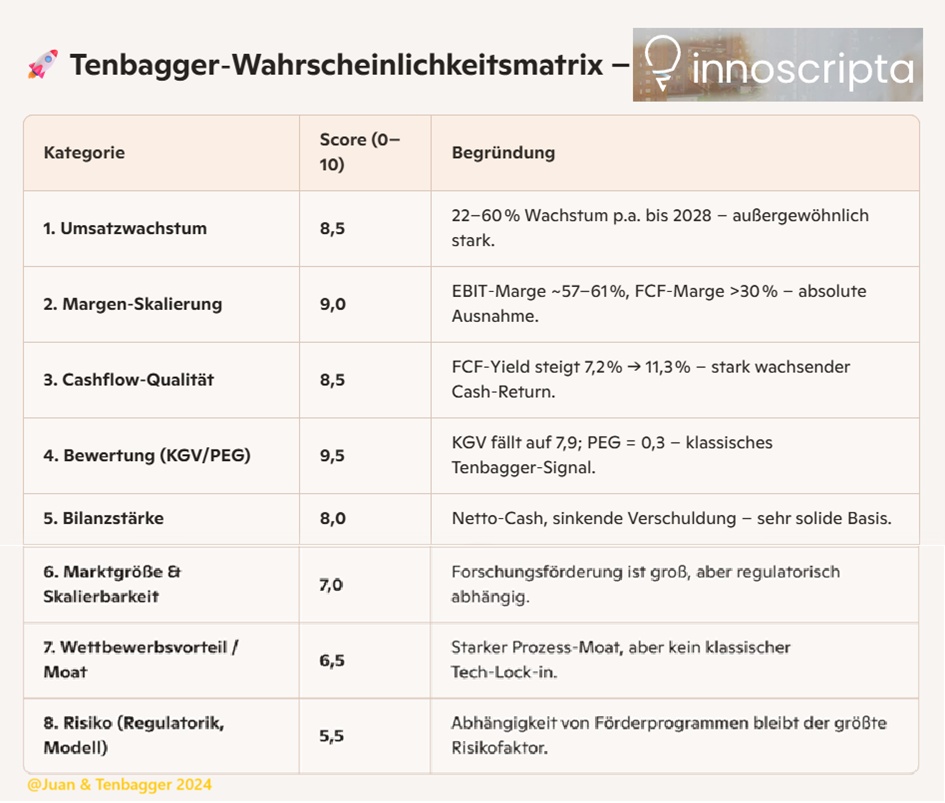 Yes, Innoscripta has real tenbagger potential. The figures speak for themselves: Undervalued, highly profitable, fast-growing, cash-flow rich.