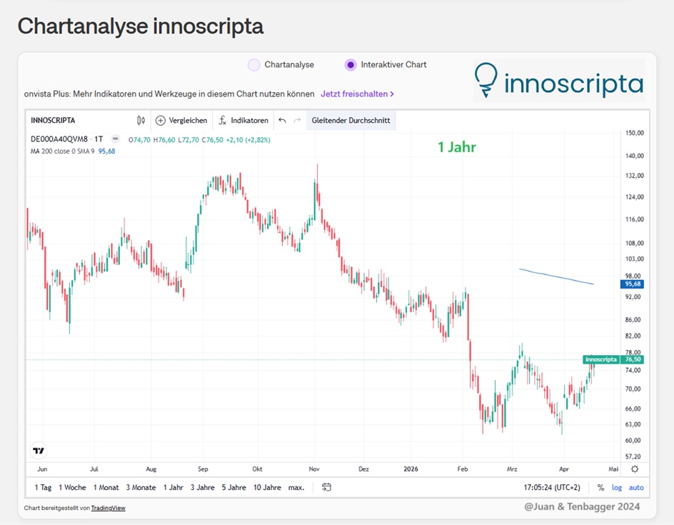 The Munich-based software company Innoscripta [WKN: A40QVM, ISIN: DE000A40QVM8] could become an exciting turnaround story according to Börse Online (issue 15/2026). After the IPO at EUR 120 in May 2025, the share price fell sharply. On the other hand, the company has grown strongly since then and generates extremely high margins. For courageous shareholders, this is a good opportunity for speculation.
