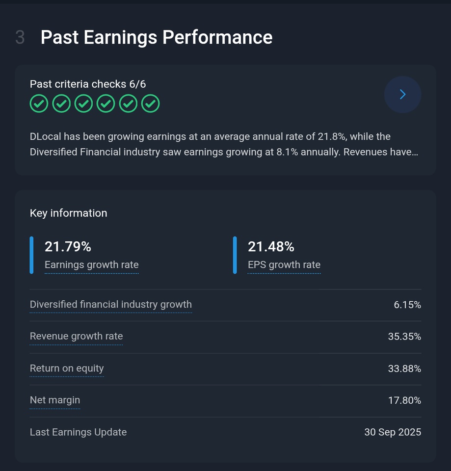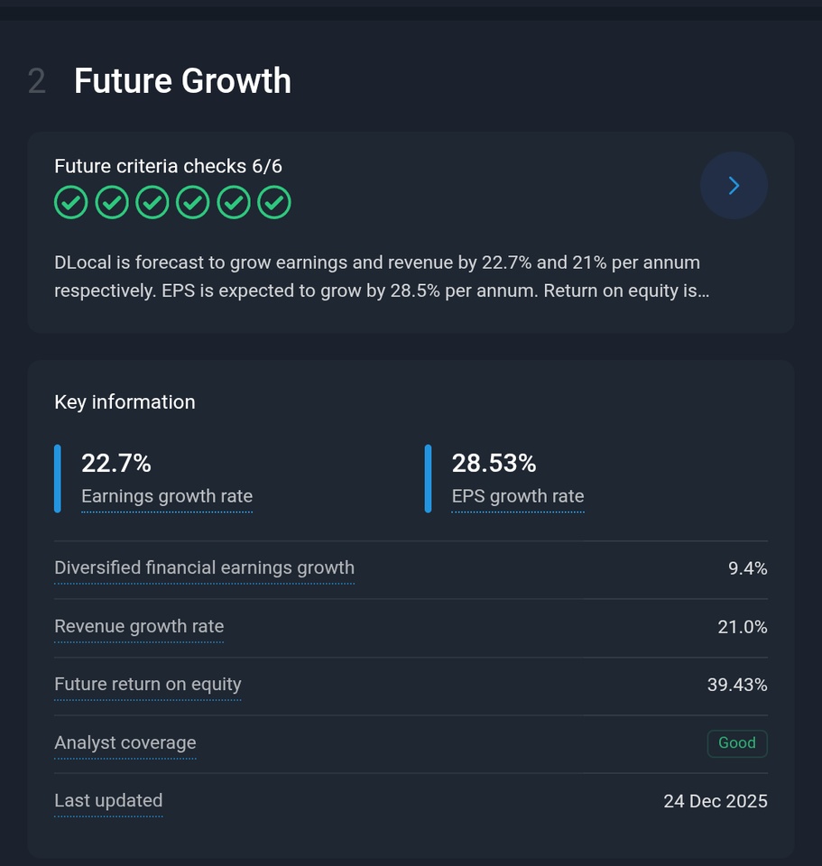 - Financial strength: dLocal is debt-free and has high cash reserves, providing security and enabling acquisitions in a consolidating market.