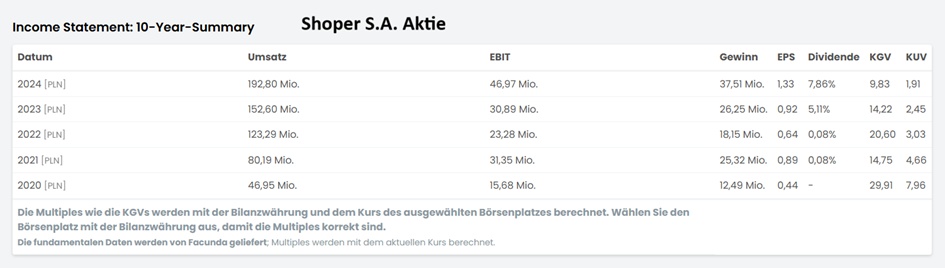 There are currently 28.134560 million shares. However, there has been no dilution of existing shareholders over the years. Instead of share buyback programs, Shoper relies on dividend distributions. This year, 1.03 złoty per share was distributed (dividend yield approx. 2.2%). The payout ratio amounted to an exceptional 77% of net profit. I do not know whether the company intends to continue paying out this amount in the coming years.