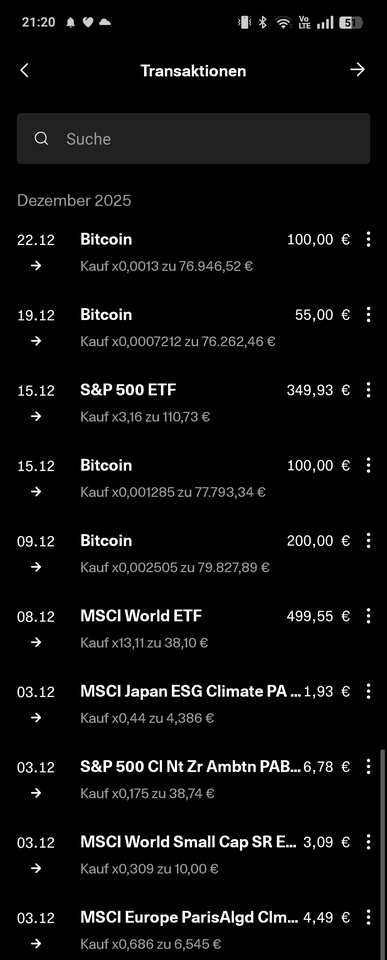 In addition, there were the following additional investments from returns, refunds, cashback, etc. as one-off savings plans/repurchases: