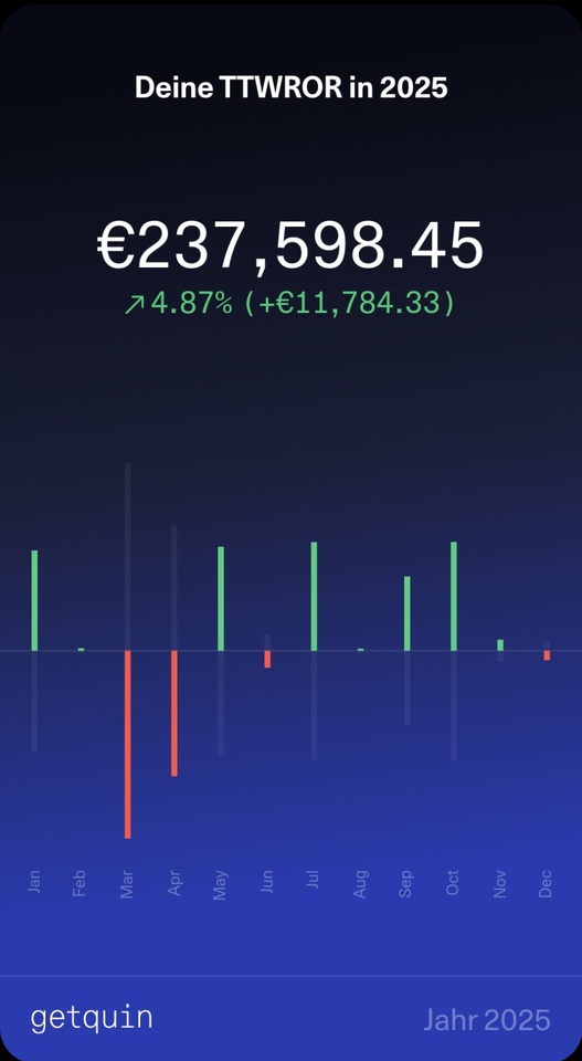 A drawdown of only 1.94% in October? That's exactly how it should be. While the markets trended sideways to slightly upwards, my portfolio remained frighteningly boring. And in the best sense of the word. The volatility of 2.51 % and the semi-volatility of 1.69 % confirm that my crypto exit has increased the stability of my portfolio. No more wild swings, just solid growth. The Sharpe ratio of 7.03? Brutally good. Maybe Trump's China deal helped the markets, maybe it was just my perfect timing. No matter! The figures speak for themselves: strategy beats chaos.