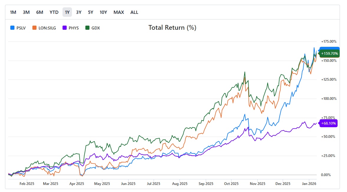 $SILG (+2,08%) is up 165% this past year, while silver is up 163%. Even though this is a slight outperformance, the expected performance should be way higher.